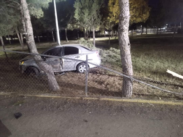 Un automovilista protagonizó un aparatoso choque al derribar la malla perimetral y quedar dentro del Parque Fundadores.