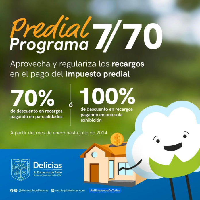 Con la intención de informar a la ciudadanía sobre los días y puntos de pago del Impuesto Predial, el Presidente Municipal, Jesús Valenciano, dio a conocer que a partir del 01 de enero se podrá efectuar dicho pago a través de la aplicación Delicias Touch, o en la página municipiodelicias.gob.mx.