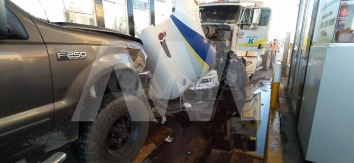 El tráiler también causó diversos daños en una de las casetas de peaje.
