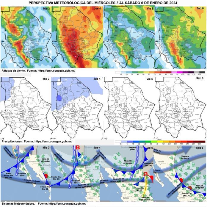 La dependencia advierte sobre la posibilidad de que estas rachas ocasionen tolvaneras en Juárez, Ascensión, Janos, Ignacio Zaragoza, Gómez Farías, Carichí, Nonoava y Balleza, por lo que se exhorta a la ciudadanía a mantener medidas preventivas.