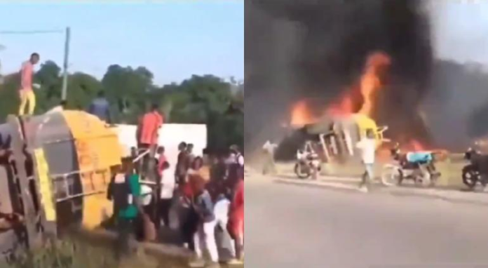 Los hechos ocurrieron en Liberia, África, en donde una pipa con gasolina se volcó en una carretera, cosa que hizo que decenas de personas acudieron a hacer “huachicol” de la gasolina que traía la pipa.