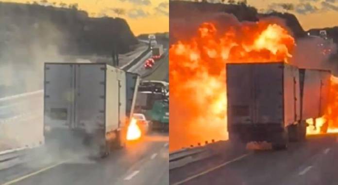 Además, en el video es posible percibir que también había autos circulando en ambos sentidos al momento en que ocurrió el accidente, por lo que, un hombre cercano a los hechos corrió hacia el tráiler siniestrado en cuanto el fuego cedió.