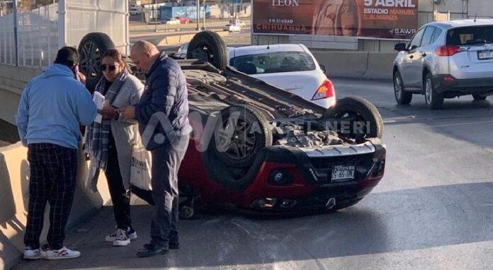 Circulaba por el periférico y tomó la gaza para tomar la Vialidad La Cantera. Por la velocidad con la que viajaba terminó por perder el control y al chocar con el muro terminó el automóvil por volcarse y quedar con sus cuatro neumáticos hacia arriba.