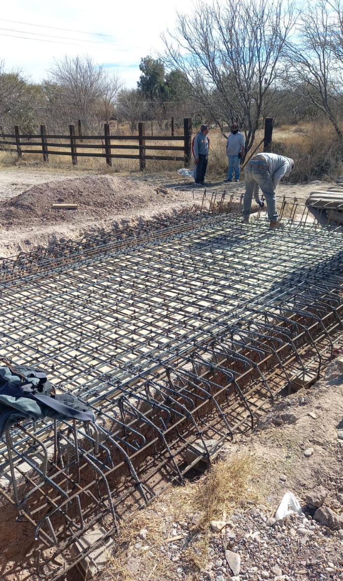 En Meoqui, se lleva a cabo la construcción de un puente de concreto armado con la intención de conectar la comunidad de Potrero del Llano con caminos saca cosechas, esto, gracias a la suma de esfuerzos entre Gobierno Municipal, Seccional de Guadalupe Victoria y el Módulo de Riego número 7, informó Ulises Escobar, director de Obras Públicas Municipales.