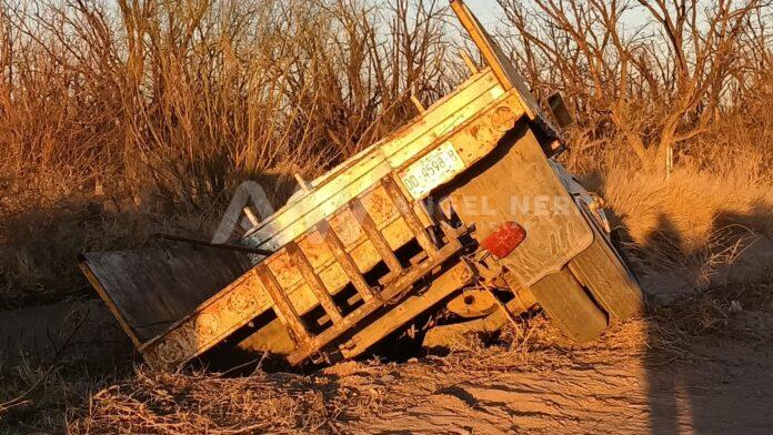 Un camión de volteo, terminó al interior de un canal revestido en la zona conocida como las cascadas, paralelo a un camino de terracería, donde a decir del conductor, perdió el control del volante, se precipitó al canal e impactó con el puente de concreto y la compuerta de metal, dejando daños aproximados a los 15 mil pesos, entre el puente y el vehículo.