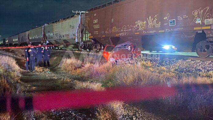 En el lugar de los hechos, se ha identificado la presencia de un tren y, contiguo a este, un vehículo tipo sedán de la marca Chevrolet, de color guinda, con matrícula del estado de Chihuahua. El automóvil presenta daños recientes en su costado izquierdo, y en su interior, en el lado del conductor, se ha constatado el fallecimiento de una persona sin signos vitales.
