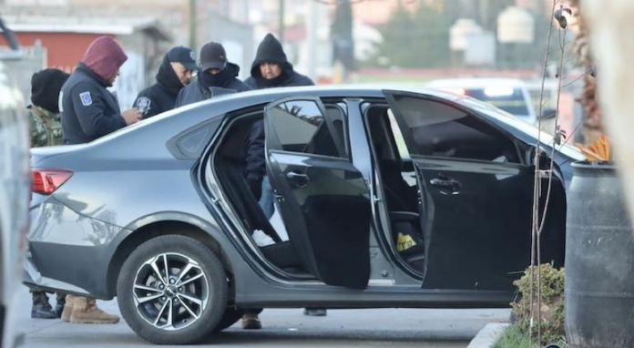 Peritos de la Fiscalía procesaron el lugar donde se encontraba el automóvil con impactos de proyectil de arma de fuego.