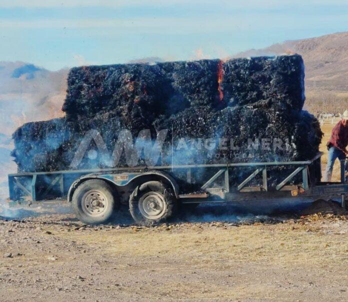 Una tráila cargada con al menos 6 pacas de 750 kilos, se incendio sobre la carretera 47 en el tramo de Orinda a Ortiz, por lo que se movilizó Seguridad Pública y el departamento de Vialidad de Rosales, así como el departamento de Bomberos de Meoqui, estos últimos, a bordo de la máquina extintora y apoyados con la cisterna, ya que se requirió bastante cantidad de agua.