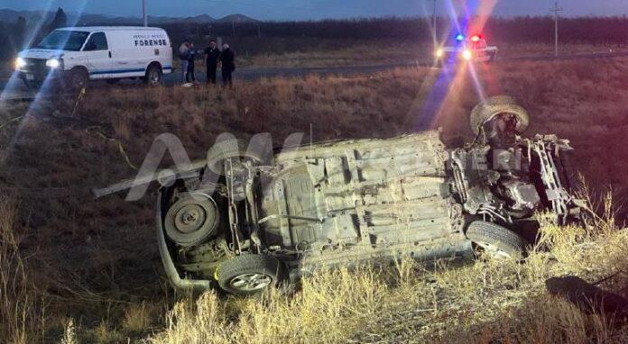 La noche del lunes, una mujer perdió la vida al volcar su camioneta en la carretera que conduce a Ciudad Juárez, en la salida del municipio de Chihuahua.