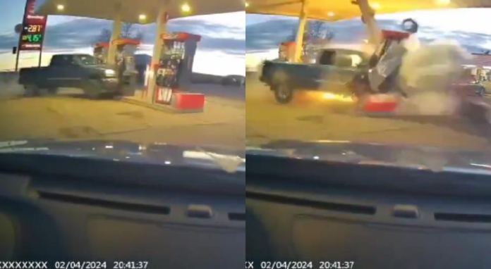 Al parecer, el conductor de nombre Tyler Turner, quien proporcionó el video, iba entrando a la gasolinera con normalidad cuando vio que a lo lejos se acercaba una camioneta a alta velocidad.