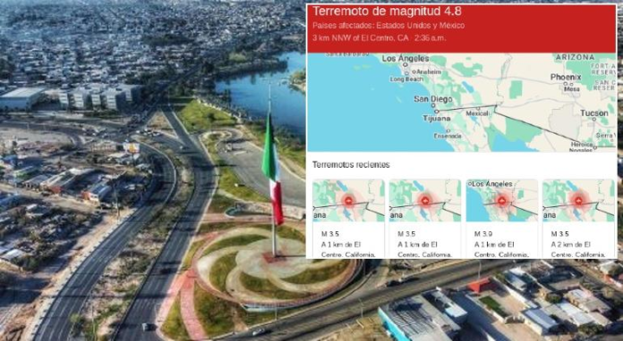 Fue a las 00:36 cuando registraron el primer sismo que se sintió en el estado de Baja California con magnitud de 4.8 grados Richter, a 3 kilómetros de distancia de la ciudad El Centro (California, EE.UU.), pero muy cerca de Mexicali.