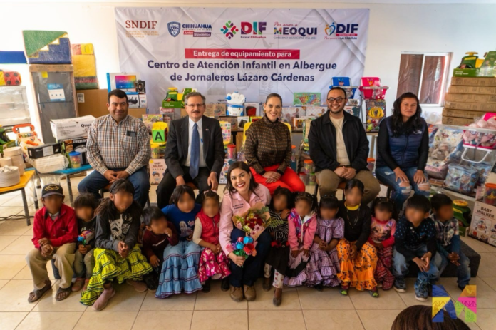 “Con este nuevo equipamiento buscamos garantizar el acceso de los pequeños a servicios en condiciones de igualdad, calidad, calidez, seguridad y protección; los padres podrán estar tranquilos de que sus hijos están bien atendidos y con las oportunidades de aprendizaje y desarrollo que todo niño y niña les corresponde por derecho”, así lo dijo la alcaldesa Miriam Soto al recibir una dotación de más de mil artículos para el equipamiento del Centro de Atención Infantil del Albergue de Jornaleros, gracias a las gestiones del DIF Municipal y DIF Estatal, ante el DIF Nacional.