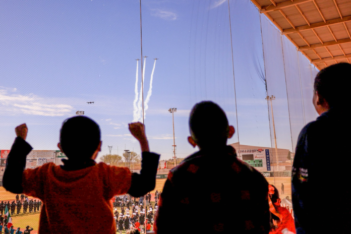 Los aviones de la Fuerza Aérea Mexicana sobrevolaron el estadio, provocando emoción entre los estudiantes que no pudieron contener su asombro al ver las aeronaves en el cielo, resaltando la importancia de crear recuerdos significativos para las generaciones futuras.