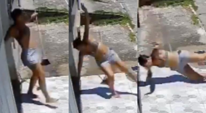 Un hombre que pasaba por el lugar, la vió en el suelo y se acercó a auxiliarla. Mientras la ayudaba a entrar a su domicilio, la mujer se veía tambaleante y confusa por el golpe.