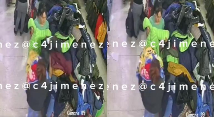 Los hechos ocurrieron en un establecimiento dedicado a la venta de chamarras. En el video se observa a las dos mujeres entrando a la tienda, una de ellas se encuentra cargando lo que aparentemente es un bebé cubierto con una cobija, modus operandi que usan para pasar desapercibidas.