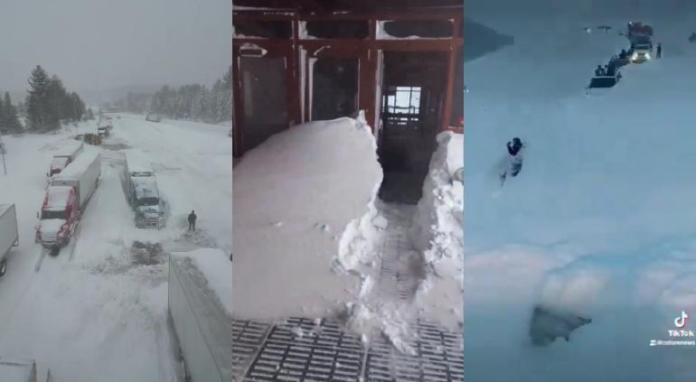 Según comentan, la tormenta llevó a California lluvias fuertes, nevadas grandes y vientos de hasta 305 kilómetros por hora, lo cual empeoró la situación de las nevadas, dejando grandes cantidades en las calles.