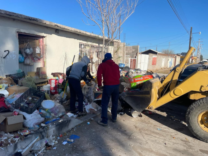 En respuesta, personal de Servicios Públicos, DIF, Seguridad Pública y Protección Civil acudieron rápidamente al lugar para brindar asistencia. Equipados con maquinaria pesada, el personal de Servicios Públicos trabajó arduamente para retirar la basura que colmaba tanto el interior como el exterior de la vivienda.