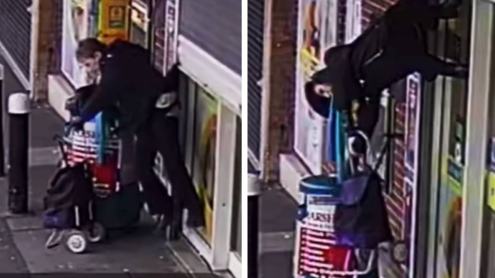 Una mujer de la tercera edad se colgó accidentalmente de una cortina de una tienda mientras organizaba sus compras en el Reino Unido. Sin darse cuenta, la señora se atoró con su suéter de una esquina de la puerta, mientras que el establecimiento abría a sus clientes.