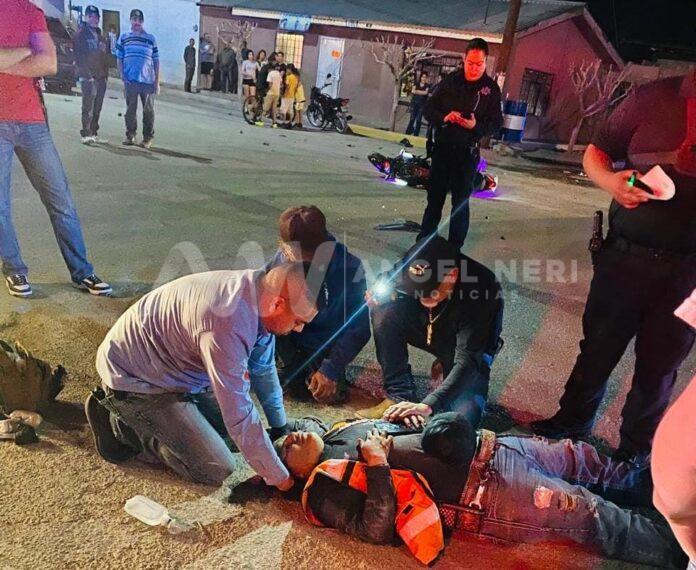 Un masculino motociclista, de 19 años de edad, resultó lesionado tras participar en una fuerte colisión con un vehículo particular en el seccional de Lázaro Cárdenas, municipio de meoqui, hasta donde acudió la ambulancia de Cruz Roja, cuyos paramédicos tras valorarlo, lo abordaron y trasladaron a un nosocomio en Delicias.