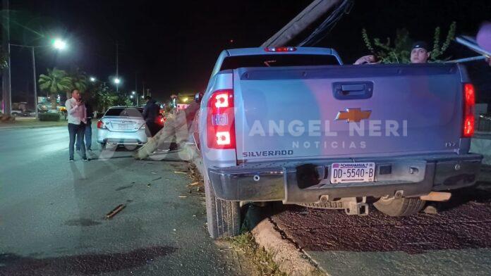 La camioneta Silverado, viajando de Poniente a Oriente, fue la protagonista del choque. Por suerte, ningún individuo resultó herido en este incidente.