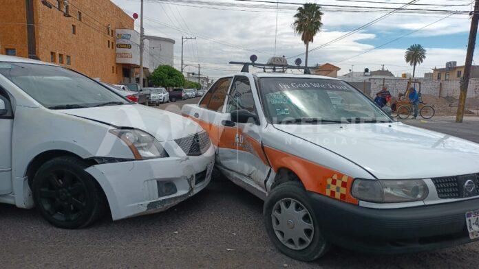 El otro auto involucrado es de la marca Nissan, tipo Sentra, color blanco, el cual circulaba de poniente a oriente sobre la calle central, mientras que el taxi se desplazaba sobre la avenida 1a Sur de sur a norte, omitiendo el señalamiento de alto, provocando ser chocado, resultando lesionada la pasajera del auto de alquiler.