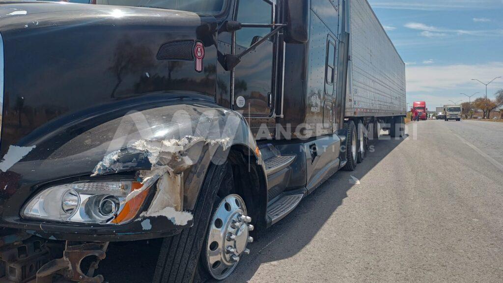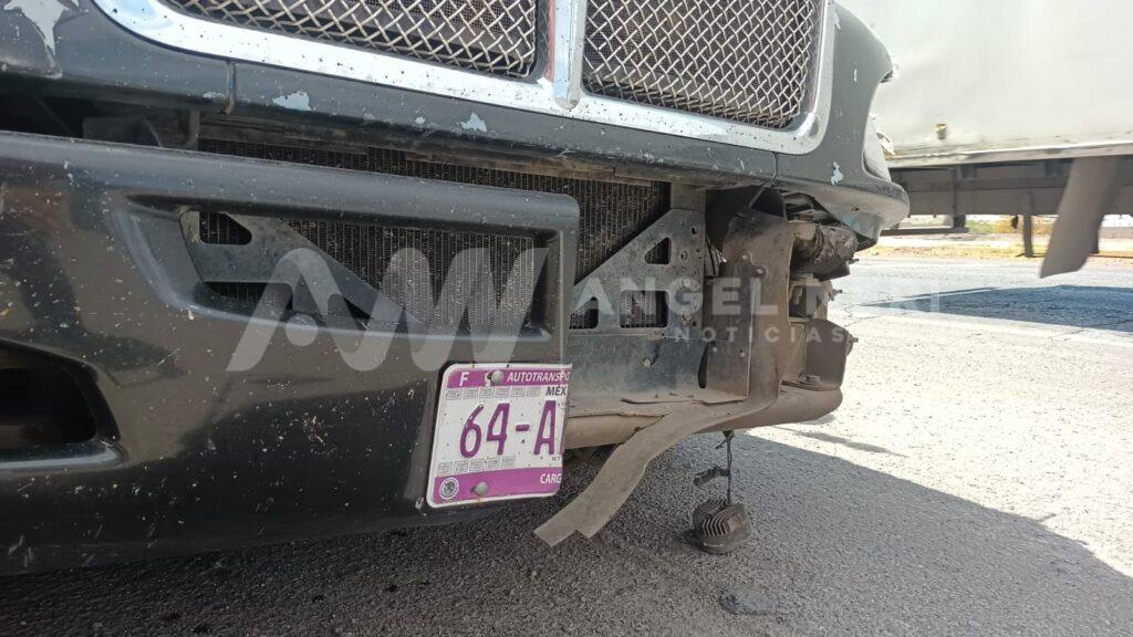 El choque involucró a un camión de la marca Kenworth, de color negro, con placas de circulación 84JE37, el cual sufrió una llanta reventada y graves daños en la parte frontal, defensa y faros izquierdos.