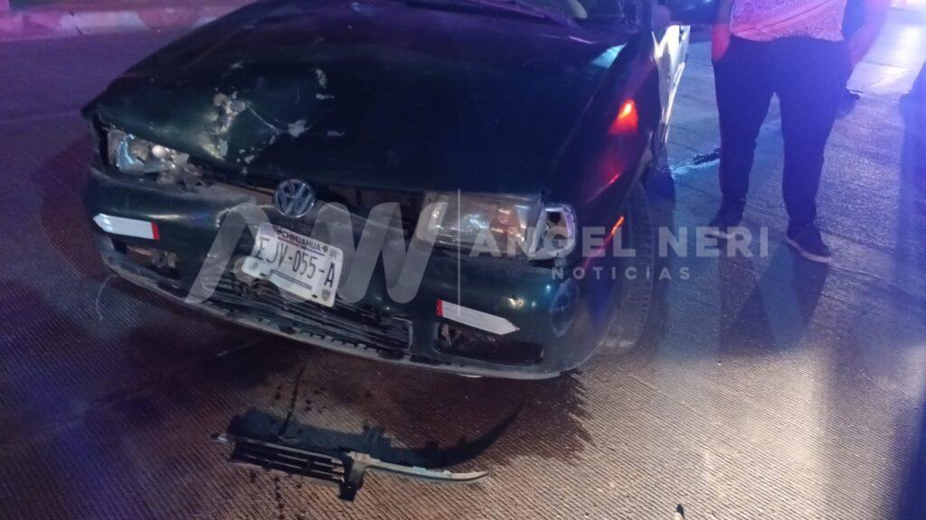 Posteriormente, durante los primeros minutos del domingo se reportó un choque en la calle Aldama, cruce con calle Ferrocarril, donde se vieron involucrados un Volkswagen, tipo Derby, color verde, conducido por quien se identificó como Saúl G. R., de 29 años, domiciliado en Las Puentes y un Mitsubishi, tipo Mirage, color gris, conducido por Sebastian S. L., de 24.