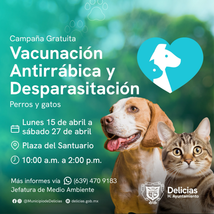 La jefatura de Medioambiente del Gobierno Municipal de Delicias, anunció el inicio de una Campaña de Vacunación y Desparasitación, junto con actividades de fumigación domiciliaria, dirigida a perros y gatos en colonias rurales. Los horarios establecidos para estas intervenciones serán de 5:30 p.m. a 7:30 p.m.