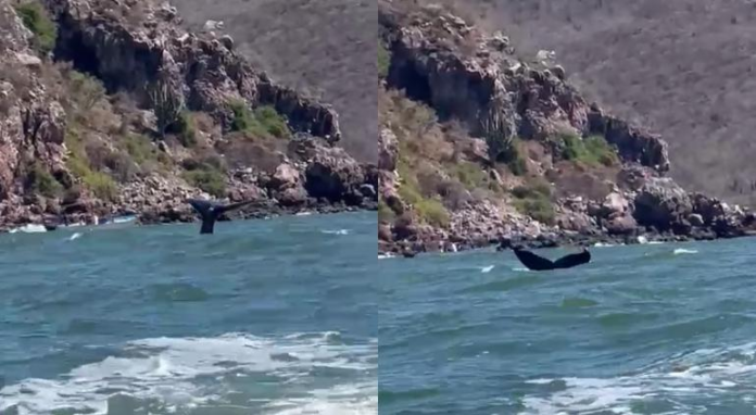 Los turistas que se encontraban en la bahía de Topolobampo y paseaban en lanchas lograron llevarse un gran espectáculo cuando una ballena se acercó a ellos.