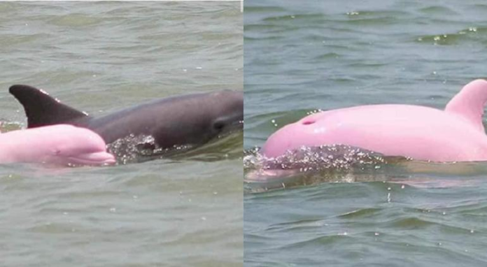 A través de las redes sociales, se viralizaron varias fotos en donde se puede ver un hermoso delfín con una piel con tonalidades rosas nadando con otros delfines cerca de las playas de Mazatlán.