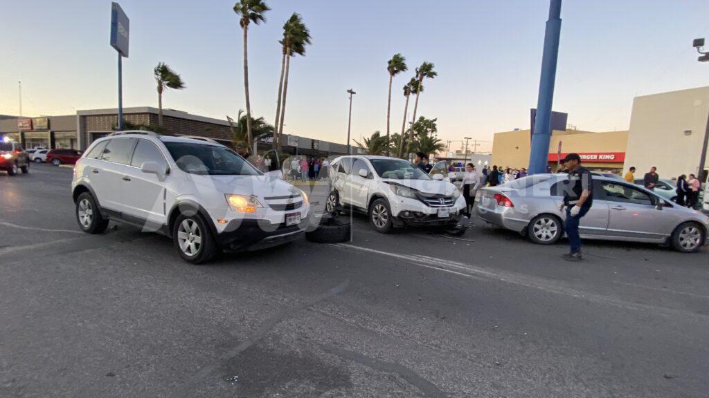 Fue minutos después de las 8 de la noche, sobre la avenida 6ta oriente y cruce con la avenida Río Florido, a un costado de Burger king, donde se registró el percance, siendo el responsable el conductor de una camioneta Ford, color gris, el cual se desplazaba a exceso de velocidad, impactando varios vehículos a su paso.