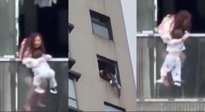 El apartamento de la mujer está en el piso 22 y tanto vecinos como su suegra, quien estaba casi inconsciente, intentaron evitar que hiciera una locura, pero la mujer sólo procedió a decir “Estoy enferma” para luego soltar al pequeño.
