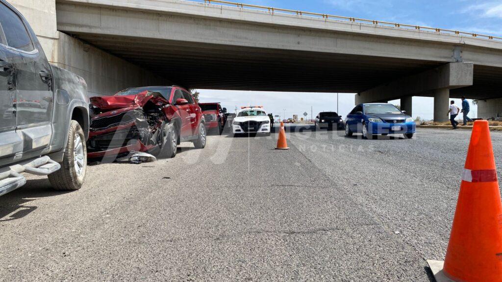 Entre los vehículos afectados por el choque se cuentan una camioneta Chevrolet, que sufrió un impacto en su lado superior, y un automóvil Kia color rojo, el cual resultó seriamente afectado en su parte frontal debido a la falta de respeto a la distancia entre vehículos.