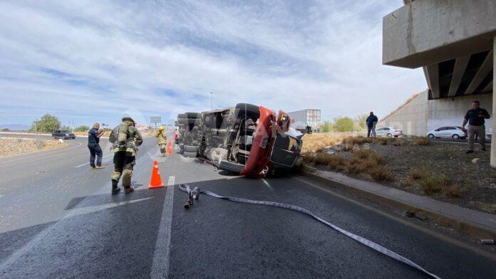 La tarde de este sábado se suscitó un incidente de considerable magnitud bajo el puente del Acceso Norte, que dejó como resultado la volcadura de un tráiler. Los hechos tuvieron lugar al mediodía en la carretera federal 45, específicamente sobre el acceso elevado que conduce a la Revolución.