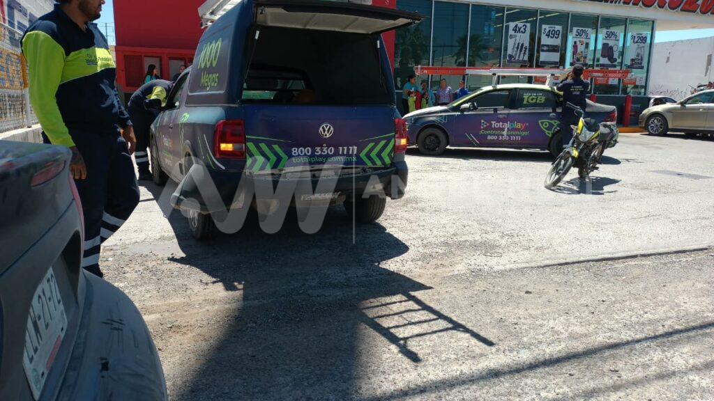En este percance participó un automóvil de reciente modelo, tipo Charger, marca Dodge, color negro, el cual impactó en su parte posterior a una camioneta de la marca Volkswagen, rotulada de Total Play, misma que a su vez impactó a un vehículo de la marca Ford, color negro, de modelo atrasado, cuando esté ultimo frenó de golpe.