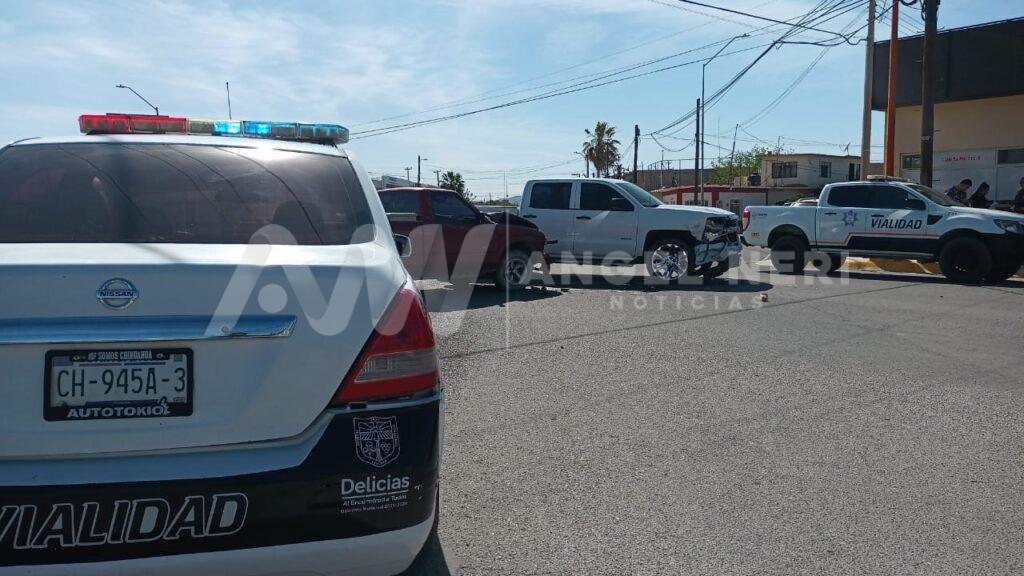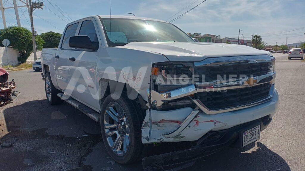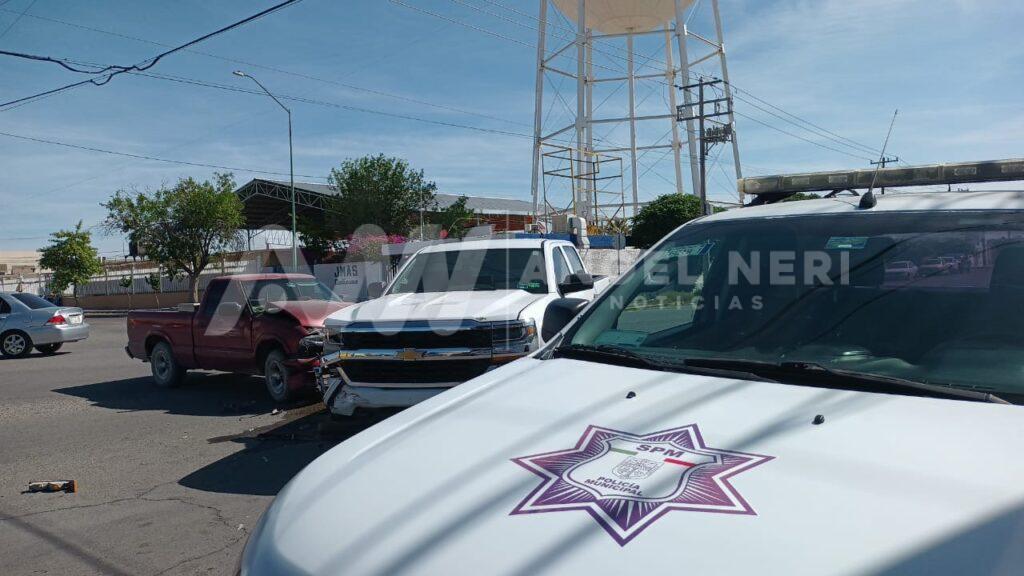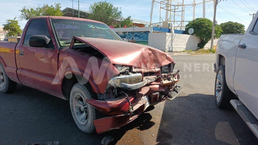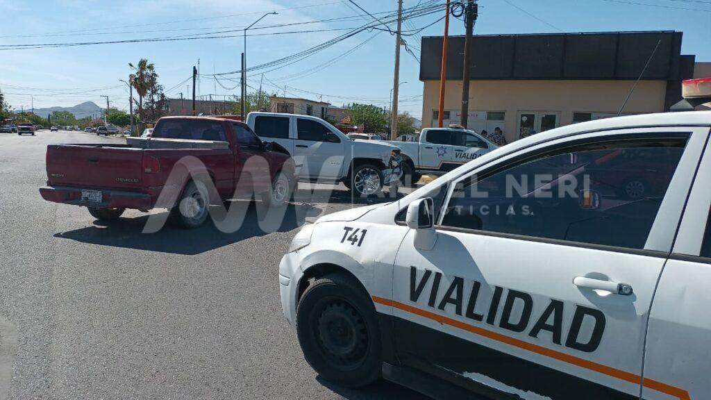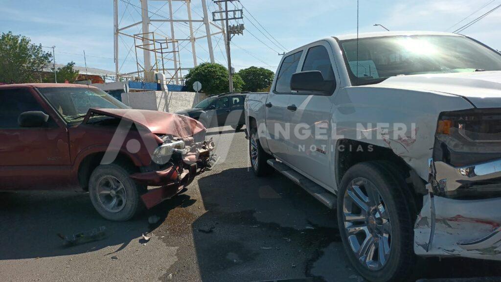 Un fuerte accidente tipo choque entre dos vehiculos ocurrido esta tarde en el sector poniente, dejó daños considerables en ambos, pues tras omitir un señalamiento gráfico de alto en la intersección de la calle Quinta y avenida Octava, con la avenida Río Florido, impactaron de manera estrepitosa, viendose involucradas dos pick up.