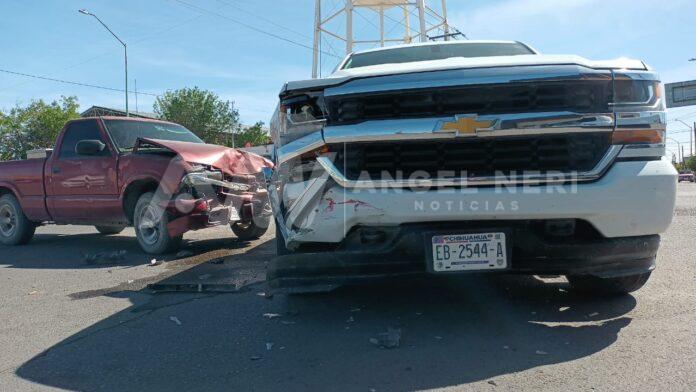 Un fuerte accidente tipo choque entre dos vehiculos ocurrido esta tarde en el sector poniente, dejó daños considerables en ambos, pues tras omitir un señalamiento gráfico de alto en la intersección de la calle Quinta y avenida Octava, con la avenida Río Florido, impactaron de manera estrepitosa, viendose involucradas dos pick up.