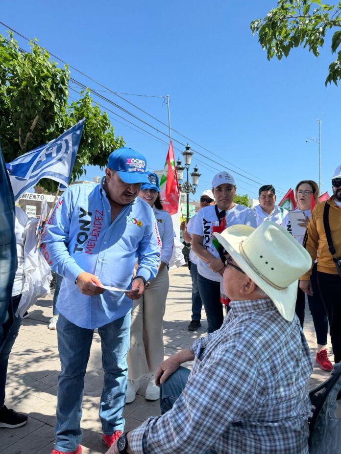 Si El candidato de la coalición Fuerza y Corazón por México, Tony Meléndez, recorrió el municipio de Meoqui por la zona centro y se reunió con integrantes del Módulo 7, con quienes reafirmó su compromiso con el campo y con la gestión de apoyos al sector agrícola del que aseguró que “se encuentra lastimado”.