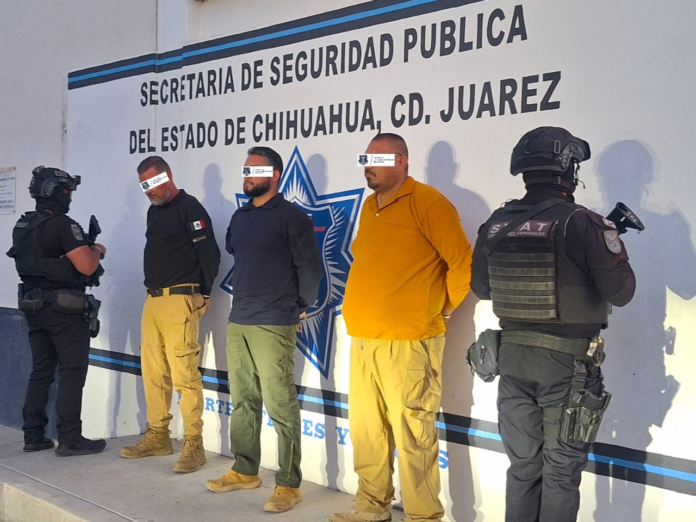 La Secretaría de Seguridad Pública del Estado a través de la Fuerza Especial SWAT llevó a cabo la detención de tres presuntos delincuentes en Ciudad Juárez, por la supuesta comisión del delito de usurpación de funciones y desobediencia, así como resistencia a particulares.La captura se llevó a cabo en el cruce de la avenida Tecnológico y Manuel Gómez Morín, donde el personal de la SSPE mantenía un despliegue de reforzamiento táctico, cuando fueron informados que la videovigilancia en la zona detectó dos vehículos Pick up Tundra con aspecto sospechoso.