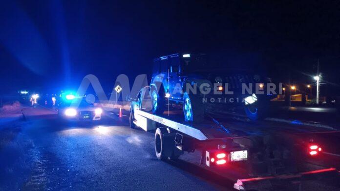 Se trata de una camioneta Jeep Wrangler Sahara, color negra, con matrículas de estado de Chihuahua, la cual quedó con la parte derecha frontal con fuertes daños, por lo que fue necesario que acudiera una grúa para retirarla del lugar, mientras tanto, la Guardia Nacional redujo el flujo vehicular debidamente señalizado para permitir el retiro del vehículo siniestrado.