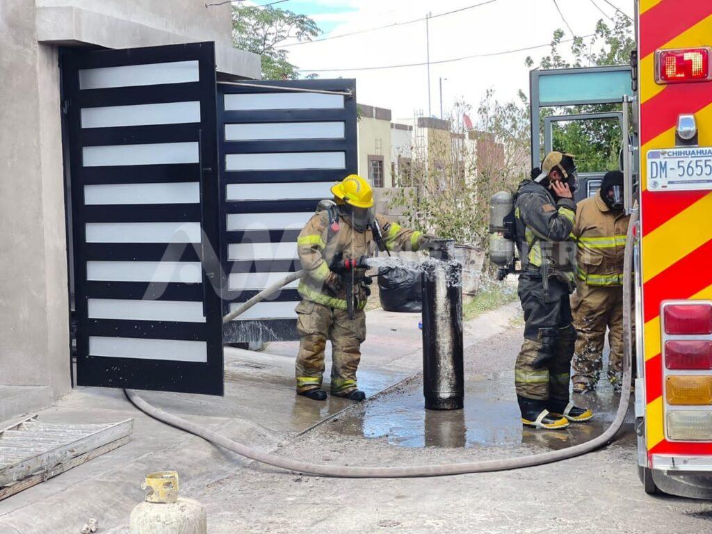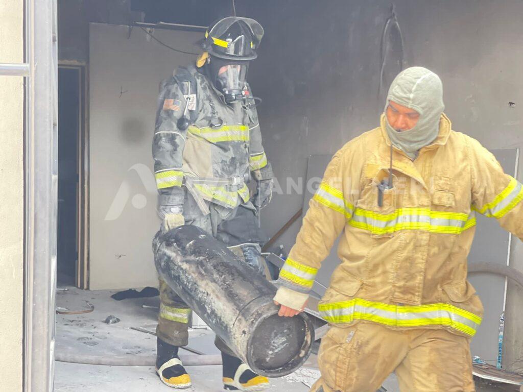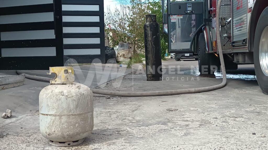 Posteriormente arribó la maquina extintora #21 y a bordo cerca de seis elementos, quienes de inmediato bajaron la manguera e hicieron las maniobras correspondientes, controlando el flamazo y asegurando un tanque de 10 kilogramos y otro de 35, ambos propiciando el riesgo de una explosión, que afortunadamente se pudo evitar.