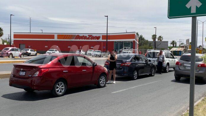 Un choque alcance entre tres vehículos, se registró este miércoles en la avenida Río San Pedro Sur; el no guardar distancia suficiente fue el factor para que estos tres vehículos impactaran.
