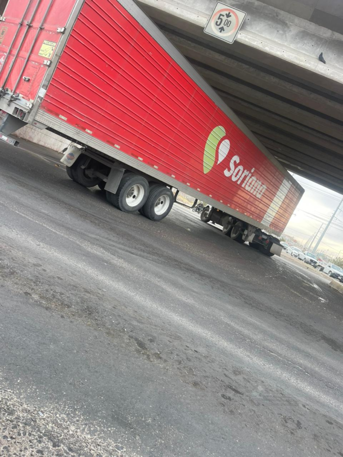 Está mañana de martes, un quinta rueda con razón social «Soriana», impactó un vehículo al realizar una maniobra peligrosa en el Puente del Cielo Vista, cuando intentaba incorporarse a la carretera federal, sin embargo, tras la colisión el tráiler continuó su marcha, retirándose del lugar.