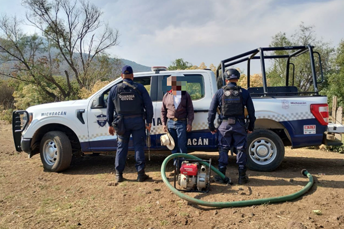 La extracción de agua se realizaba para el rancho conocido como Abrevadero, en la comunidad de Puácuaro, municipio de Erongarícuaro. Los elementos de la Guardia Civil entrevistaron al dueño del terreno donde tenía una huerta de aguacate, quien detalló su uso para riego, así como para su ganado.