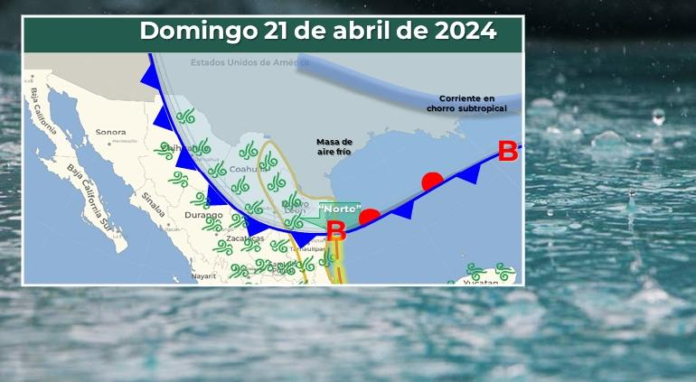 El pronóstico a 96 horas de Conagua señaló que “el domingo 21 de abril, finalizará la primera onda de calor, debido al debilitamiento de la circulación anticiclónica en niveles medios de la atmósfera, así como al ingreso de la masa de aire frío asociada al frente No. 47”.