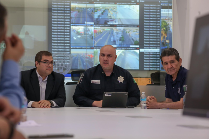 Con la finalidad de mostrar el funcionamiento de la plataforma centinela, se llevó a cabo en las instalaciones del sub centro Delicias, ubicado en en complejo de seguridad pública una reunión encabezada por el alcalde Jorge Luis Issa Calderon y el Mtro. Simeon Esparza Peynado