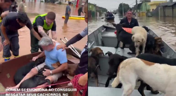 A la gente le pareció muy noble que el señor quisiera participar y lo dejaron, pero grande fue la sorpresa de los rescatistas cuando se dieron cuenta que sus cuatro “hijos” eran en realidad perros.