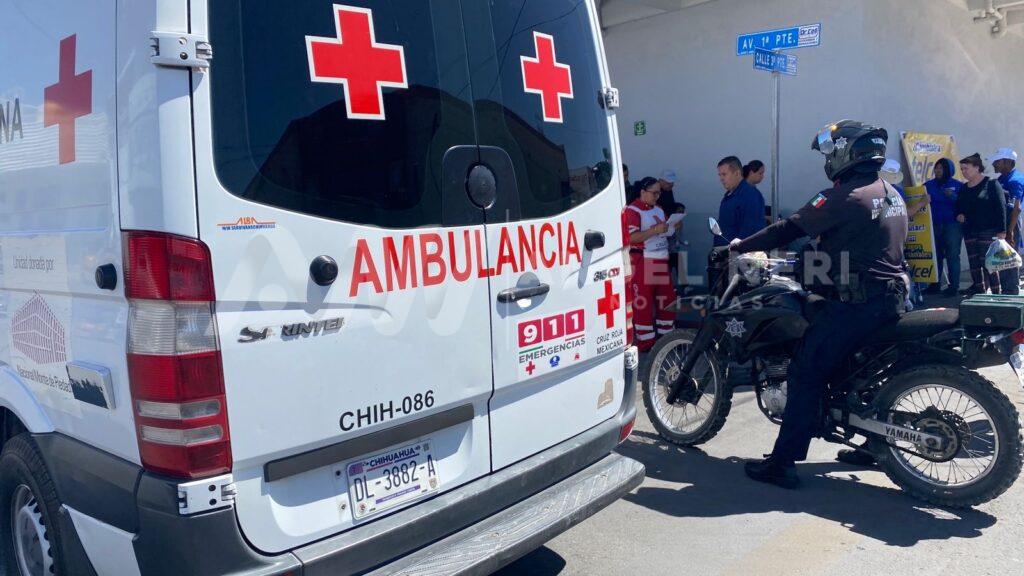 Una mujer fue atendida por paramédicos de Cruz Roja, luego de qué resultaba lesionada en un incidente vial en el centro de la ciudad; según testigos, la mujer se lastimó cuando intentó descender de un vehículo de alquiler.