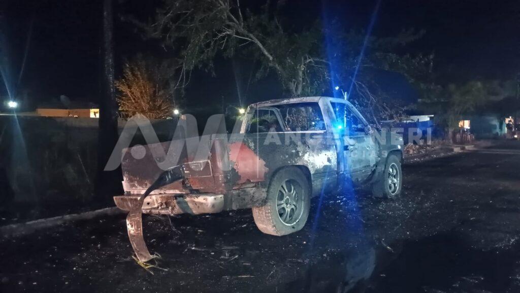Lo anterior se registró minutos después de la media noche de este domingo, en la calle Miguel Hidalgo de la colonia Pri, a la altura de los números 100, dónde al frente de una vivienda se encontraba la pick up que resultó completamente calcinada, con daños en su carrocería, interiores y parte del motor, quedando en perdida total.