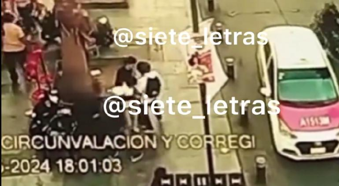 Una cámara de seguridad, logró grabar en las calles Corregidora y Circunvalación del Centro de la Ciudad de México, cómo unos motociclistas apuñalaron varias veces a unos vendedores ambulantes.